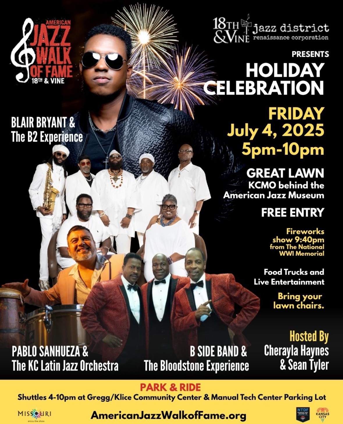 - Option 1: 18th & Vine Jazz District – concert + citywide fireworks show